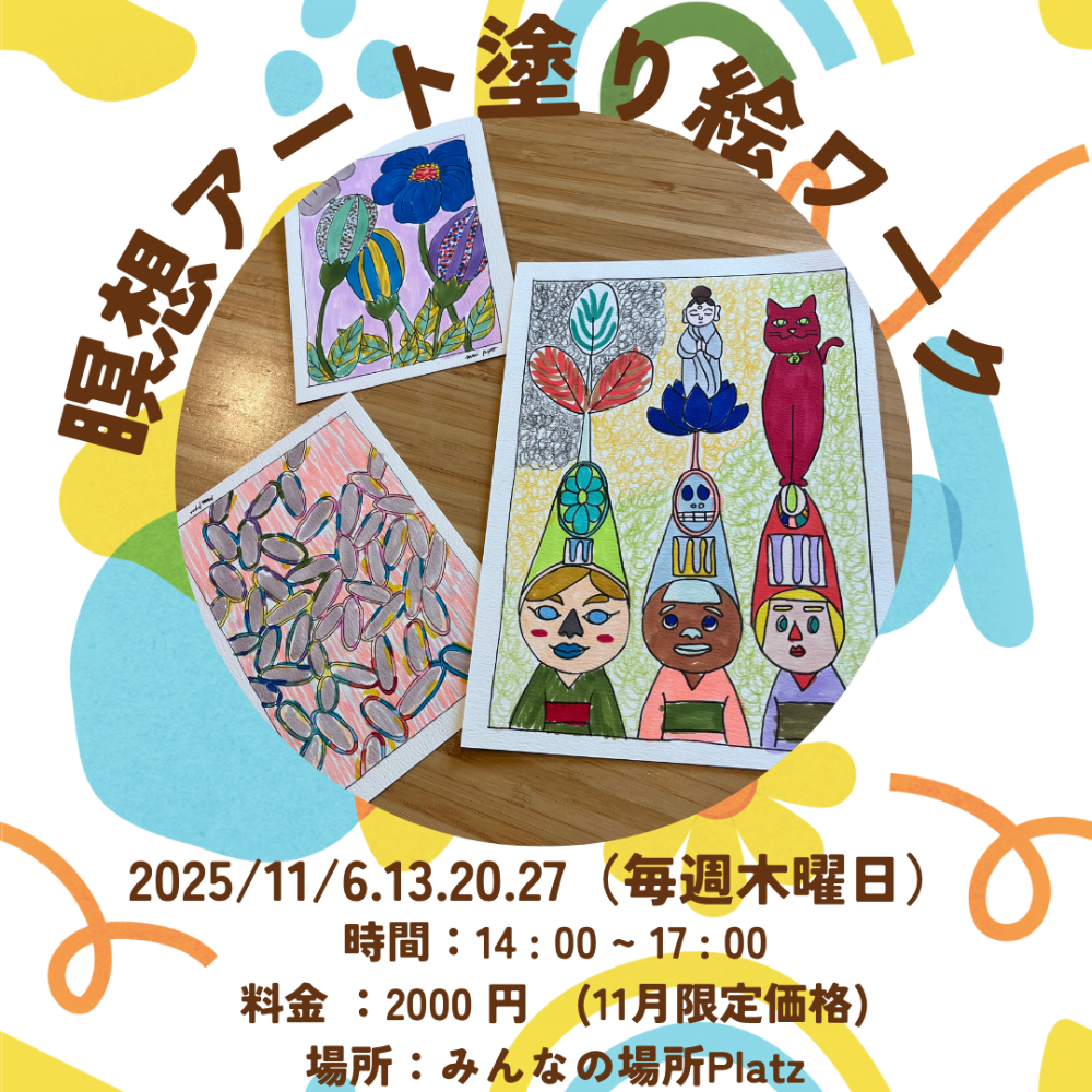 そんな「瞑想アート塗り絵ワーク」が11月の毎週木曜日に開催されます🌿